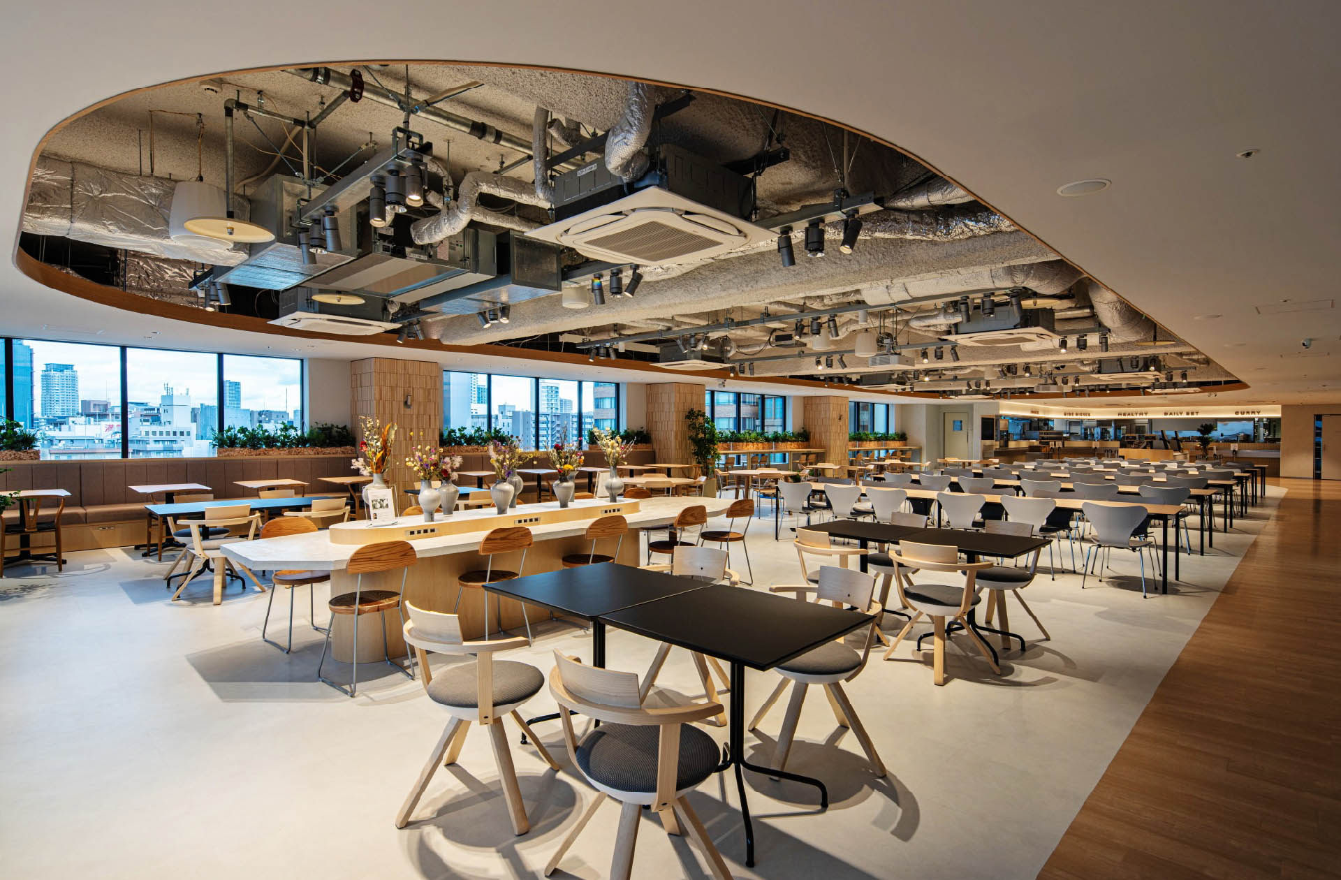 当社ブランドステートメントである「一人ひとりが輝くコミュニティであふれる社会」「多様性を尊重し、つながりが生まれる空間を創る」と積水化学工業様が目指す「働きやすさと働きがいを両立する職場づくり」を掛け合わせた空間づくりを目指し、既存の食堂をコワーキング利用も可能としたWell-Beingを生み出す場としてリニューアルしました。