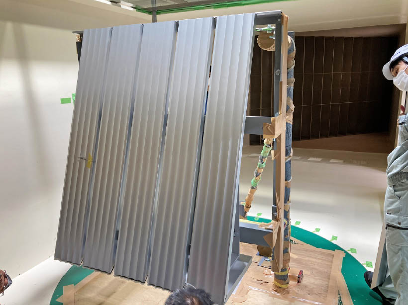 水のモチーフを外観でうまく表現させるために、ルーバーの角度や隙間等細部まで丁寧に検討しました。検討段階ではモックアップ製作から風切音試験まで行い、さらに取付時は現場検査を重ねた甲斐もあり、水のゆらぎをうまく表現できたと思います。