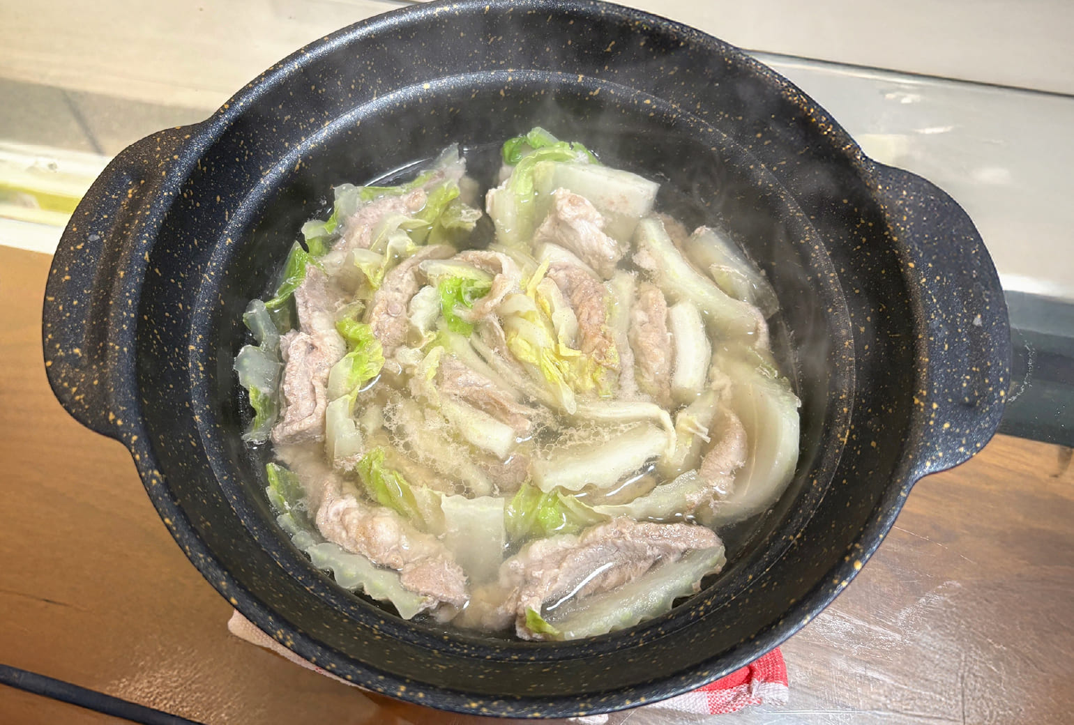 ありったけの白菜と豚肉を敷き詰め火にかける、たったそれだけ。