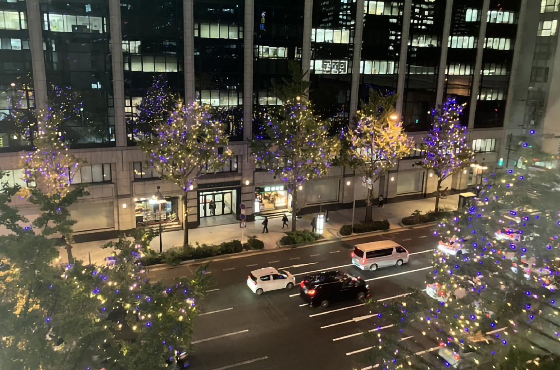 本社(梅田新道ビル)の東側の窓からは御堂筋イルミネーションを眺めることができます!
