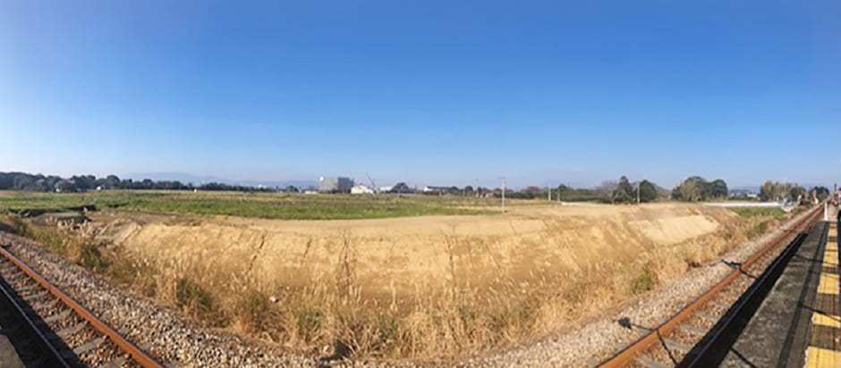 三﨑さん:もともとこの土地は畑でした。福岡県の中央部に位置する小郡市は、緑豊かで広々とした田園集落が広がっています。