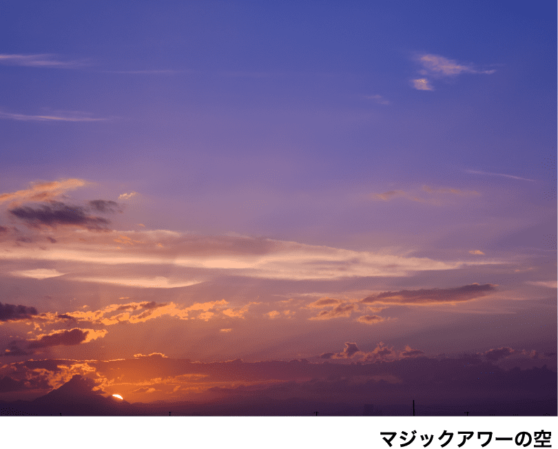 ※マジックアワー…日の出や日の入りの前後に太陽が傾き、空の色が変化する時間帯のこと