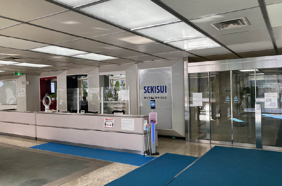 井口さん:リニューアル工事は2023年3月~2025年6月まで、2年3か月の期間で実施しました。今回のリニューアルでは、積水化学工業様から、本社機能を維持しながらリニューアル工事を実施したいという要望があったため、関電不動産梅田新道ビルを仮事務所として構築し、フロアごとに工事を進めていく必要がありました。内装だけでなく、耐震補強や空調機器の更新、外装デザインの一新など多岐に渡る工事を実施したため、想像以上にタイトなスケジュールでした…。
