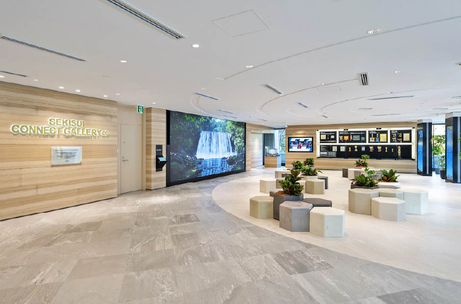 テナントである積水化学工業様と共同で「ESG×SDGs」に配慮したオフィスビルへの大規模リニューアルを実施し、利用者の「健康性・快適性」向上を目的にオフィス空間を再構築し、「CASBEE スマートウェルネスオフィス」のSランクの評価認証を取得しました。本工事によりオール電化の採用と再生可能エネルギー由来の 環境価値を付加した電気の供給を受けることで、ゼロカーボンを実現しています。