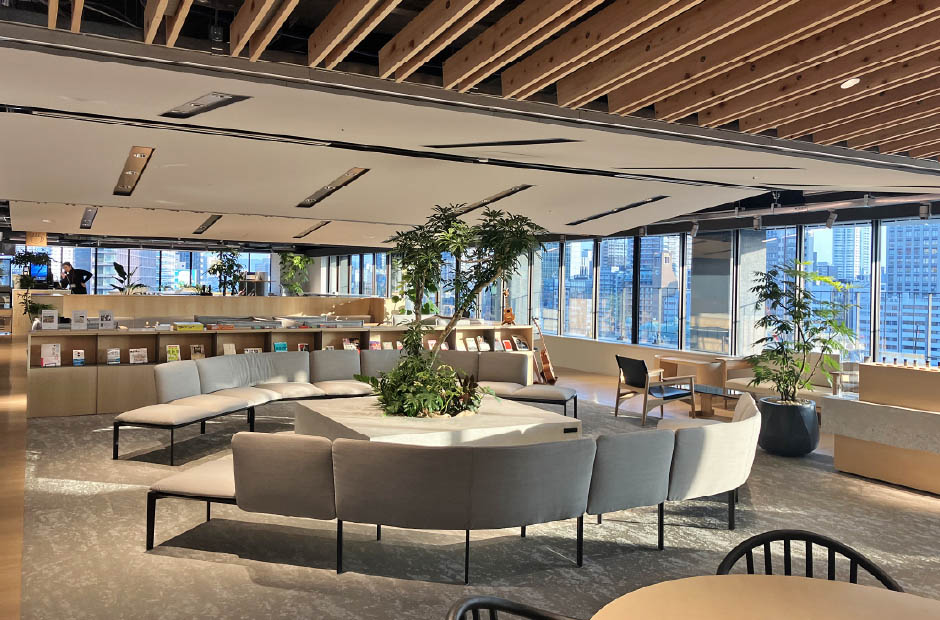 今井さん:当社としてこれほどのリニューアル規模は初めての取組みであったため、何をどこまでリニューアルしていくか手探り状態で大変でした。特に新築と異なり、工事フロア以外については従業員が勤務していることから、騒音・振動等について想定外の問題が発生しましたが、テナントや施工業者と連携し、何とか施工を進めることができました。本PJの推進と同時に、当社ブランドステートメントが策定されたことを契機に「ブランドステートメント」の考え方や想いを随所に取り込むことに尽力しました。当社ブランドの体現に向けた先行事例のひとつになればという想いで取り組みました。