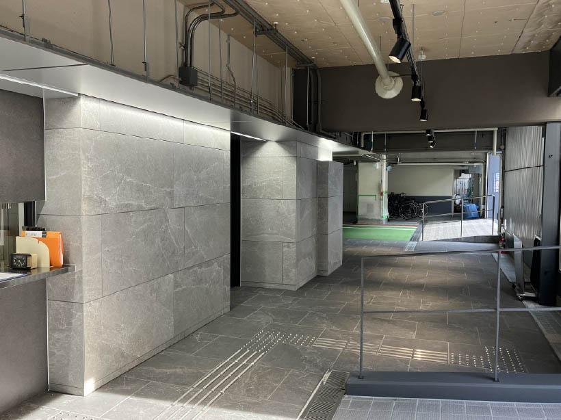 リニューアル前のテナントアンケートでも、“社員通用口をキレイにしてほしい”というご意見もあり、駐車区画削減によって生まれたスペースを活用し、動線の歩車分離、車寄せ新設を行い、新たな社員通用口を再整備することができました。