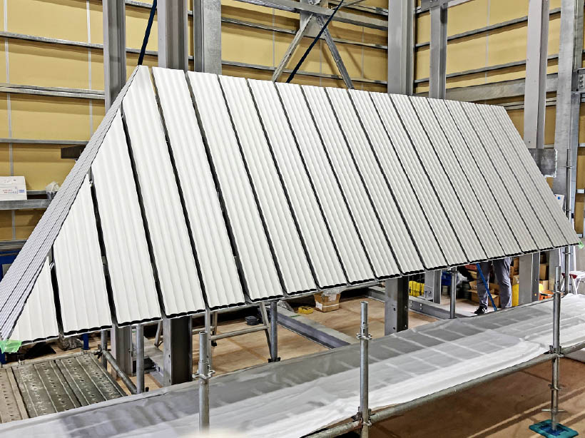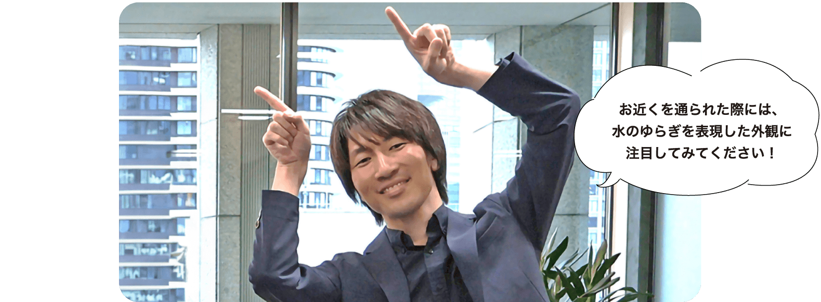 水のモチーフを外観でうまく表現させるために、ルーバーの角度や隙間等細部まで丁寧に検討しました。検討段階ではモックアップ製作から風切音試験まで行い、さらに取付時は現場検査を重ねた甲斐もあり、水のゆらぎをうまく表現できたと思います。