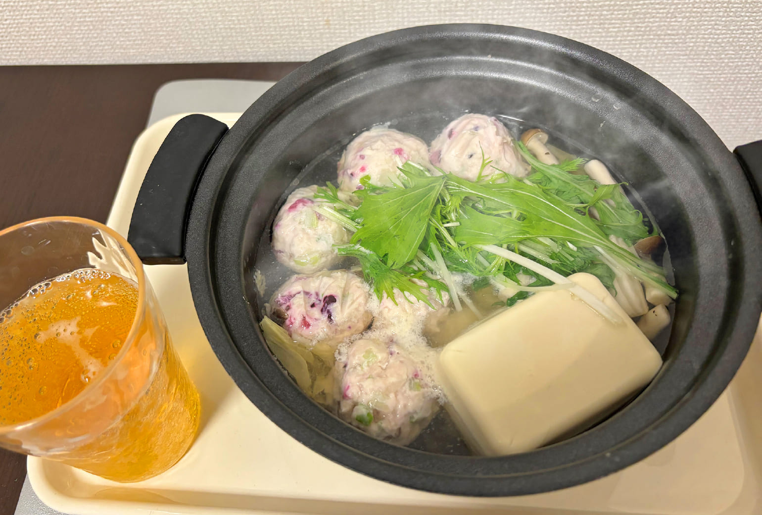 単身赴任歴20年の私は、外に呑みに行く日以外は、ひとりで呑むために手間を惜しまず毎夜アテを作っています。鍋も時々作りますが、お肉や野菜を買ってきて、せいぜいしゃぶしゃぶぐらい。しかし今回は、ネットで拾ったレシピを真似して鶏つくね鍋を作りました。つくねに赤いものが入ってます、さて何でしょう?…答えは「しば漬け」です。
