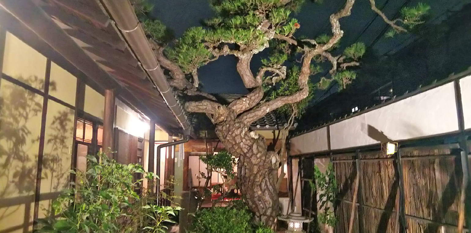 お店は築80年の古民家でお庭からは樹齢300年の老松を眺めることができます。