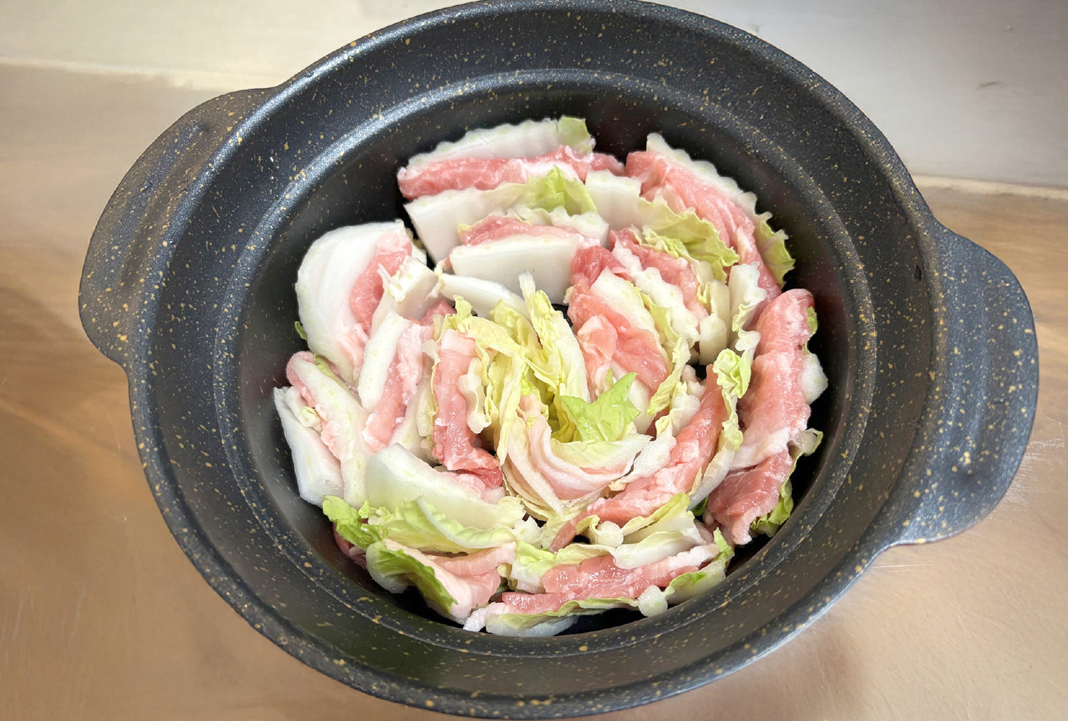 ありったけの白菜と豚肉を敷き詰め火にかける、たったそれだけ。