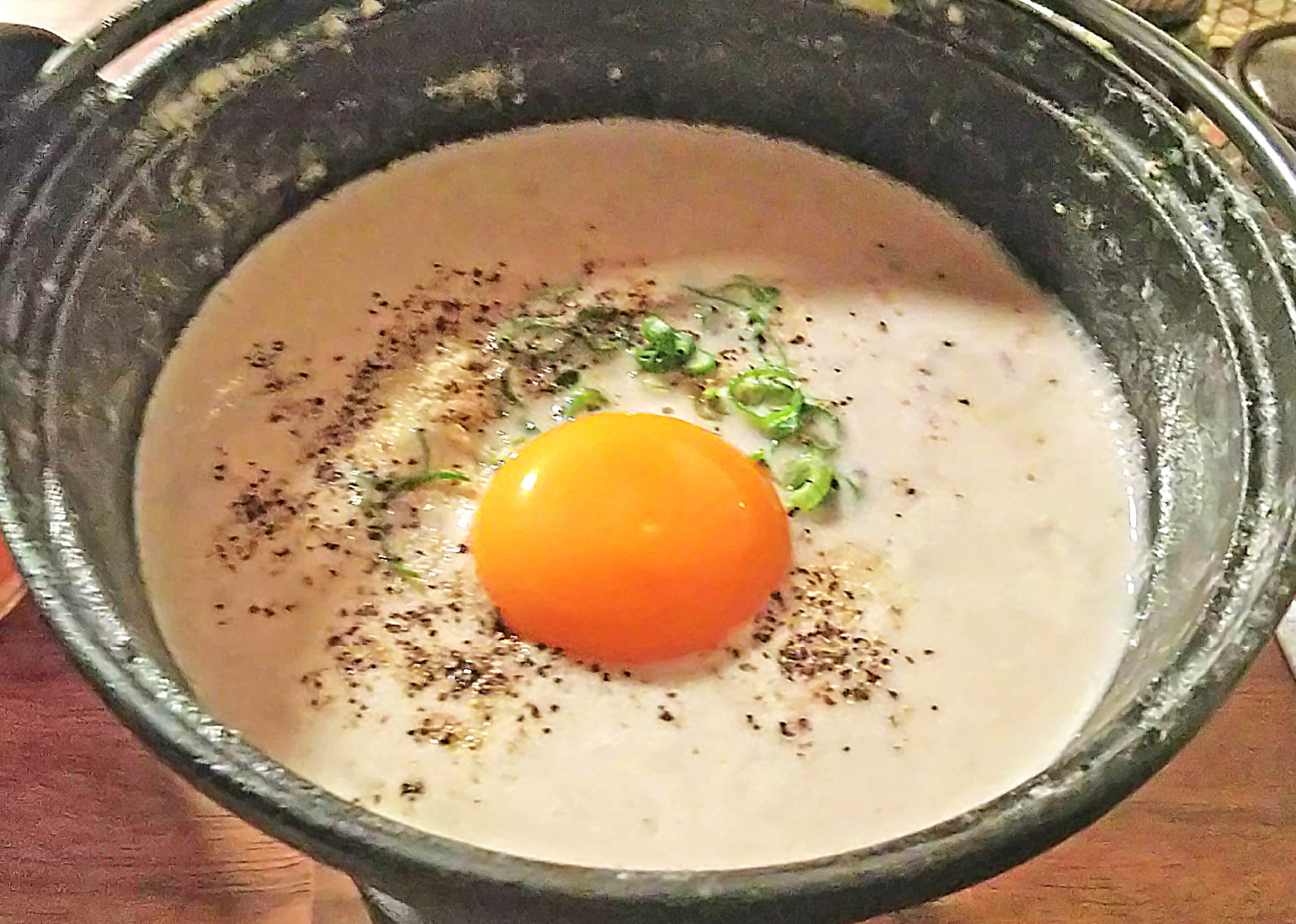 一見合わない組み合わせですが、隠し味として白味噌と地酒「春鹿」大吟醸の酒粕が加わり、まろやかでコクのあるお出汁です。