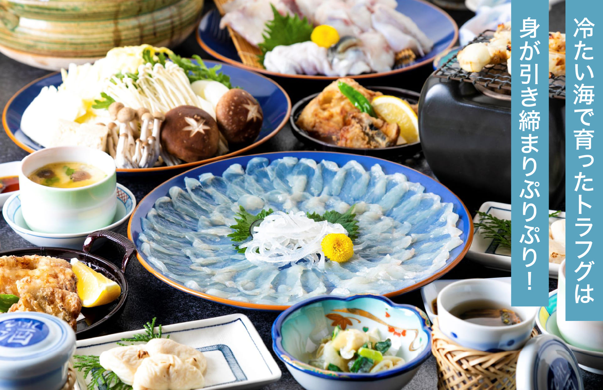 若狭ふぐはよく身が締ってぷりぷりとした触感で歯ごたえがあるのが特徴です。県内には養殖場があり1年を通して美味しい若狭ふぐ料理を楽しむことができます。