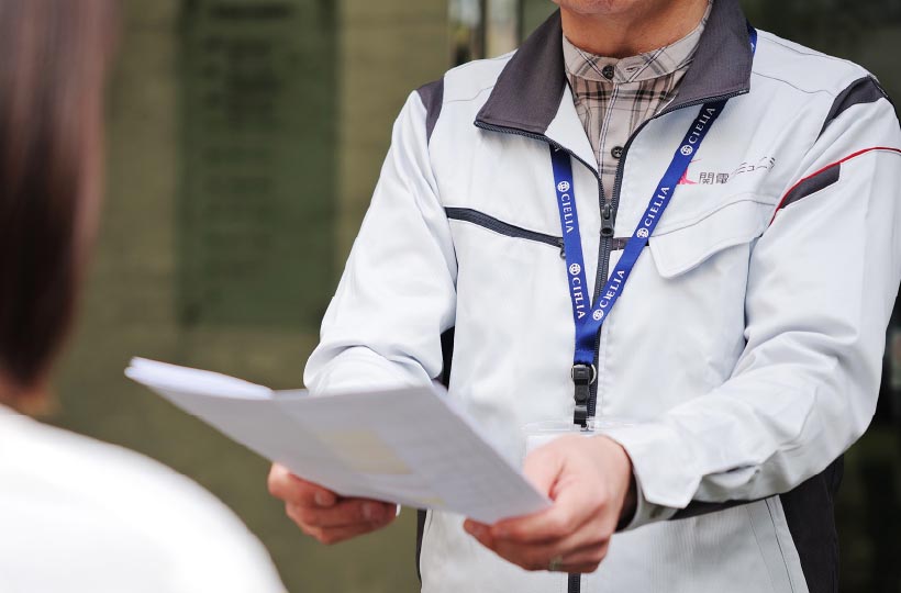 主要事業の紹介:関電コミュニティは、関電不動産開発のグループ会社として、分譲住宅ブランド「CIELIA(シエリア)」の「管理」の役割を担っていますが、「製・販・管」一体の住宅として、「製」の部分においても、設計段階から協議に参画しています。管理会社の立場として、建物の動線や共用部分の仕様変更など、お客さま目線で積極的に意見を伝え、安全かつ快適に過ごしていただける住まいづくりに貢献しています。