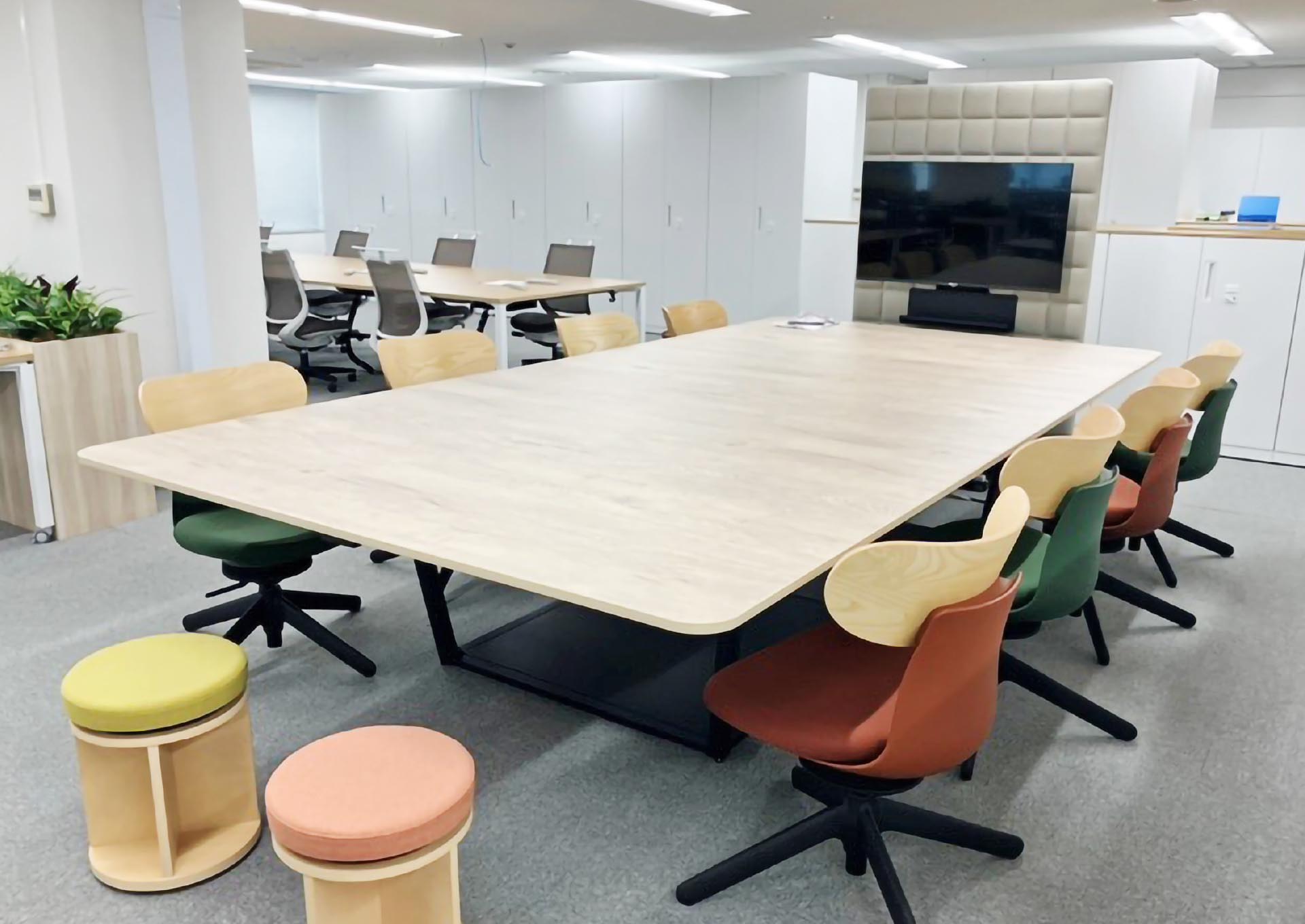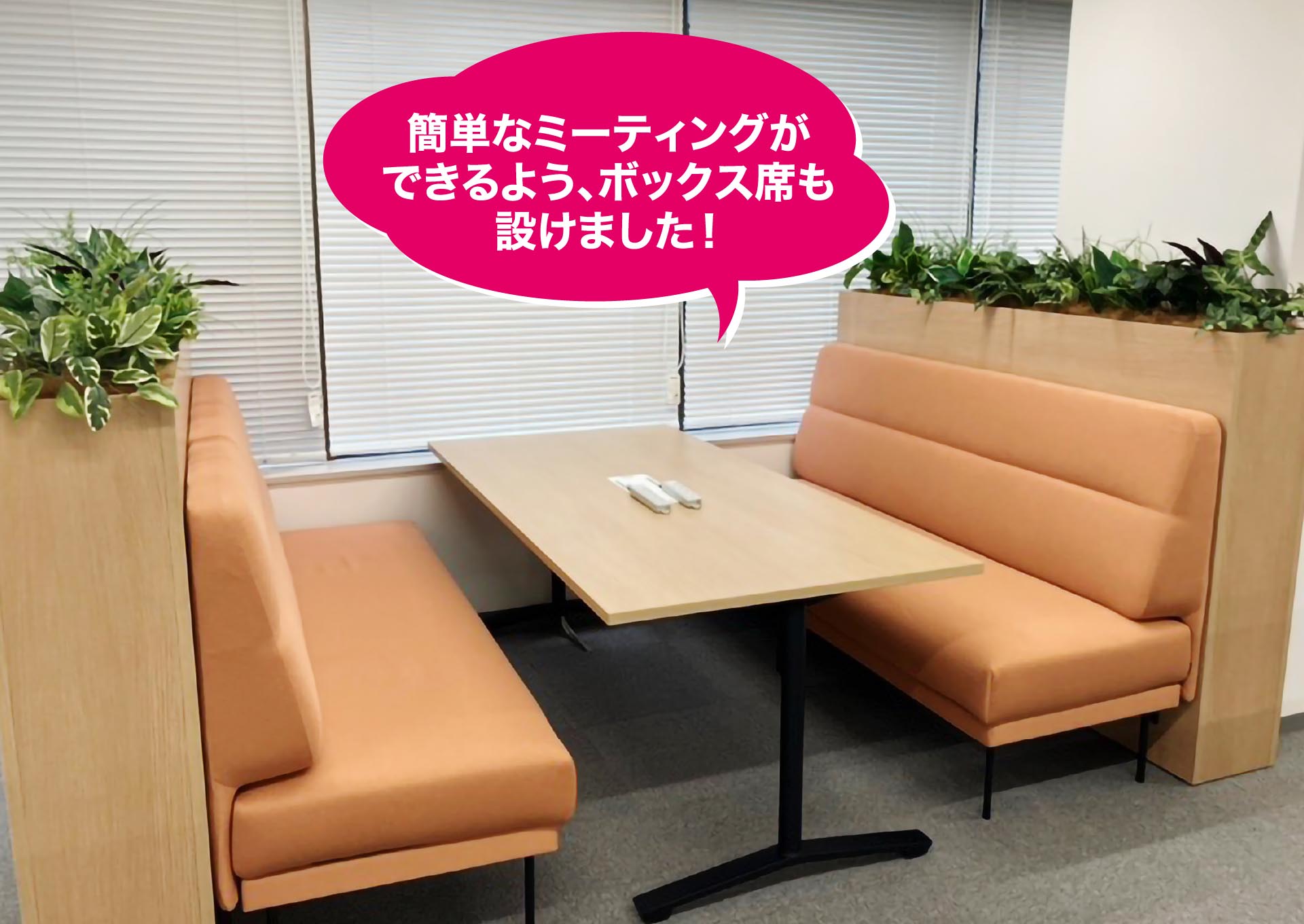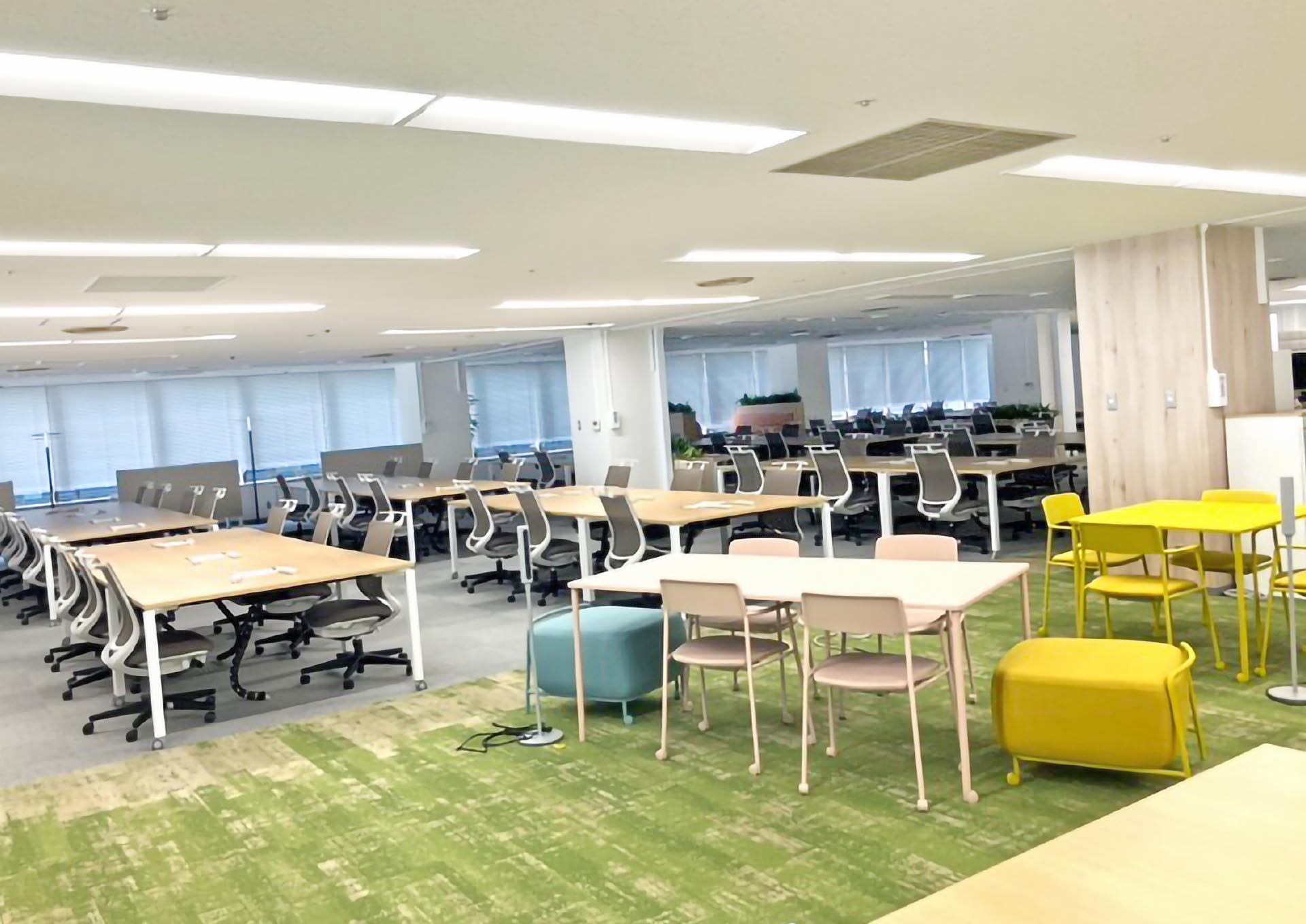 移転前のオフィスは固定席かつ執務室が4フロアに分かれており、部署をまたぐコミュニケーションが取りづらく、閉塞感があり、リフレッシュスペース等もありませんでした。新オフィスは1フロア約330坪の執務室でグループアドレスを導入することにより、従業員同士のコミュニケーションが取りやすくなり、一体感が感じられるオフィスとなりました。また、各部から選出された移転プロジェクトメンバーで什器を選定し、執務室内のオープンスペースで簡単なミーティングができるようボックス席等を設け、オフィスが明るくなるようにパステル調の什器を選定しました。コーヒーマシンを設置したリフレッシュスペースも新たに設け、美味しいコーヒーと、その待ち時間にも会話が生まれると従業員からは好評です。新しくなったこのオフィスで気持ち新たに従業員一丸となって頑張りたいと思います。