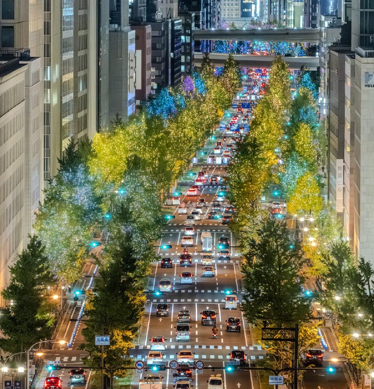 本社(梅田新道ビル)の東側の窓からは御堂筋イルミネーションを眺めることができます!